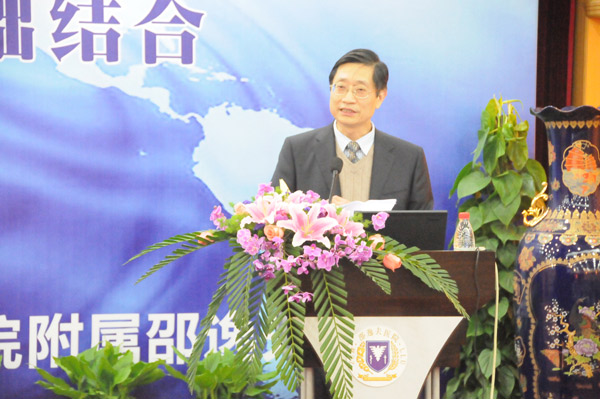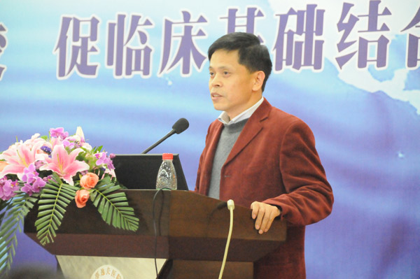 随后,学部主任段树民院士作了重要讲话。段树民主任首先浅谈了上任三个月以来的感想和体会:1)随着对学部和附属医院的深入了解,感受到了医学部积极向上的动力与活力,认为虽有不足,但发展潜力巨大,因此,他对医学部的发展充满信心;2)他个人的想法和工作思路得到了学校领导、学部领导和教授们的支持和配合;3)感觉压力大,主要是医学部的科研工作质量有待进一步的提高,迫切需要有高显示度的成果。由此,段树民主任认为一方面要通过公共技术支撑体系的建设改善软环境,并创造良好的科研环境和工作氛围,另一方面要继续推进基础和临床、医学与其他学科的进一步交叉融合,积极引进科研人才,建立转化中心和医学中心。他建议通过“双聘”和在华家池校区建立转化医学研究的公用平台等形式,探索有效的基础与临床结合机制,以加快医学部科研工作的进一步发展,为学部的全面繁荣而努力奋斗。
