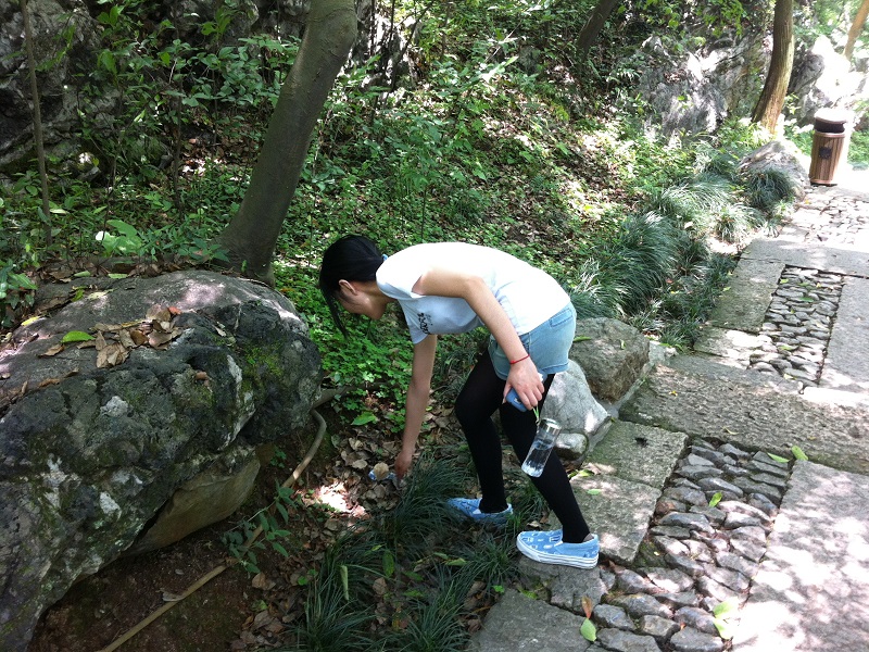 早上9点,15名支部成员从华家池校区出发,乘坐公交车来到位于钱塘江边的八卦田遗址公园,在参观了别具一格的八卦田后,大家开始向玉皇山顶进发。玉皇山是一个景区,在这样晴朗的周末,前来游览的游客络绎不绝,山下和山腰的停车场停满了车。游人多了后,路面上的垃圾也不时地映入眼帘,在这清秀的山水间显得尤为刺眼。同学们在所经之处,必定将该处的塑料袋、纸屑拾起,等遇到垃圾桶后再扔进。从山脚到山顶,再从另一面下山,一路上大家都很自觉地没有留下一点垃圾,并且眼疾手快地清除其他游客留下的垃圾,在饱览美景的同时,“挥一挥衣袖,不留下一点痕迹”。
