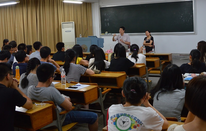 交流会一开始,丁克峰老师就用自己幽默风趣的谈吐吸引了在场同学们的热情关注,场内掌声雷动。袁瑛老师介绍了浙医二院肿瘤科的概况,包括其发展历史、杰出团队、主攻专业等等,同时也介绍了肿瘤内外科紧密合作、MDT(多学科协作诊治)等具有特色的优势运作模式。细致而深刻的演讲引发了在场同学对肿瘤科的极大兴趣。之后,丁克峰老师又建议同学们及早对自己的人生进行规划,寻找榜样的力量,并努力在医学事业中找到自己适合的位置和价值,给予了同学们深刻的启迪。