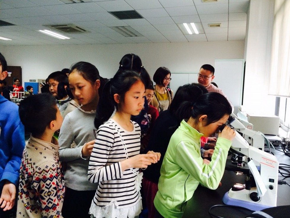 本次活动意在拉近高校与社会的距离,使得高校科研不再神秘化,给普通大众特别是中小学生提供一个与科技亲密接触的机会。本次活动将对参加者进行一定的科学知识普及,并让他们亲自参与科学实验,体验科学实验给他们带来的乐趣,激发探索精神,同时促进参与形成健康的卫生习惯,预防疾病的传播。小朋友们参与热情极高,在认真听取了李立伟老师关于病原微生物知识的讲解之后,提出了自己的科学问题,随后在老师的指导下完成了简单的微生物实验操作,用显微镜观察了微生物的形态及结构,参观了微生物标本实验室。