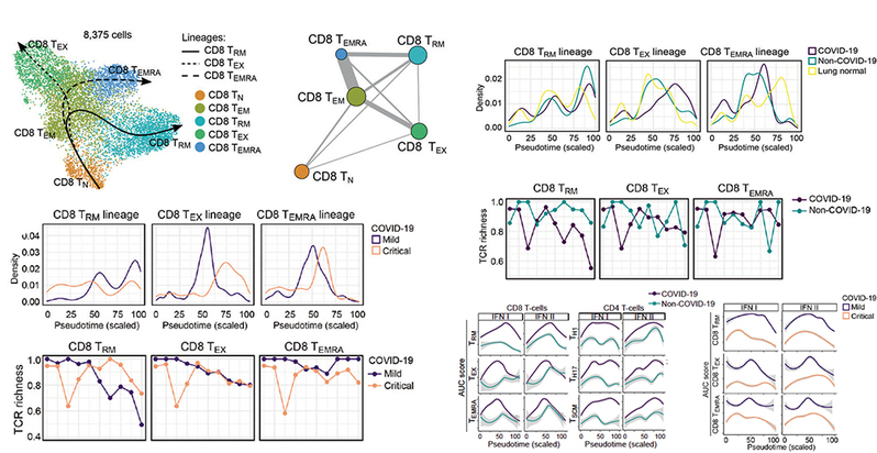 图2:CD8+ T细胞分化轨迹以及其在新冠肺炎中的病理改变