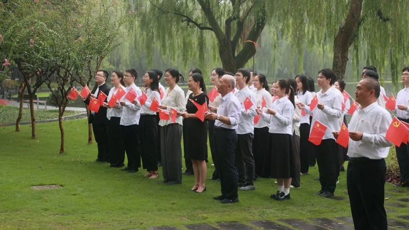 华家池校区,升旗仪式在奔马广场庄重举行。医学院师生,心怀家国,志在四方,用青春誓言告白祖国情深意长。